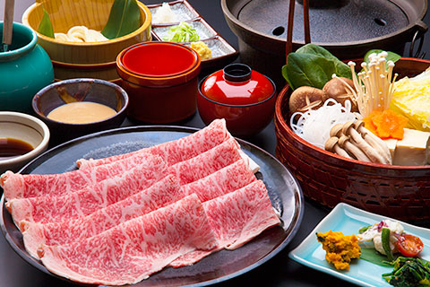 シンプルな調理方法ながら、お肉本来の旨味を楽しめ、湯にくぐらせた霜降りのお肉は、お口の中で美味しくとろけます。〈A-4等級 飛騨牛コース〉
